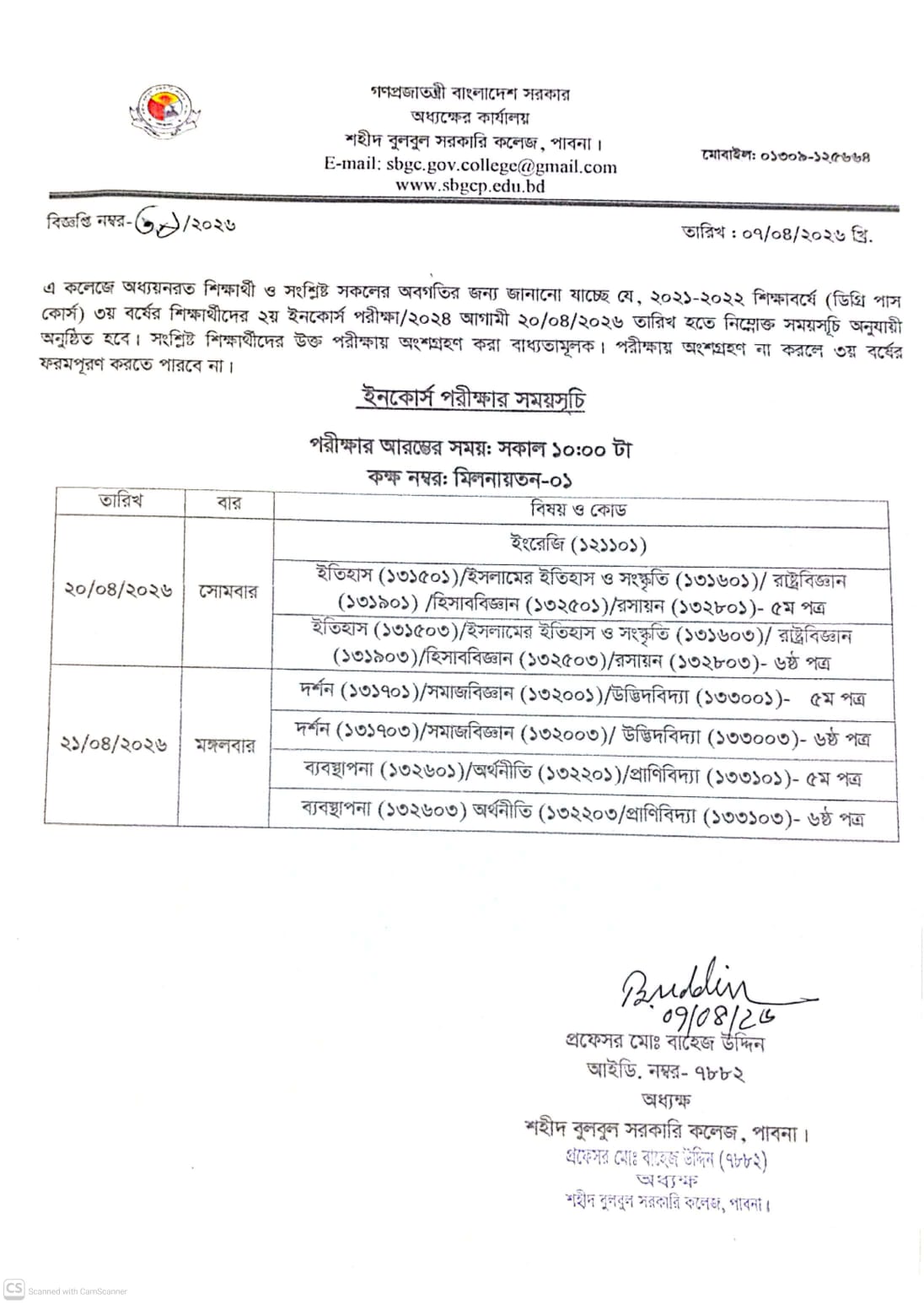 কেন্দ্র: শহীদ বুলবুল সরকারি কলেজ, পাবনা