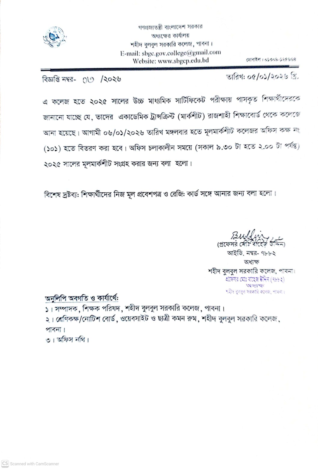 ২০২৫সালের পাসকৃত শিক্ষার্থীদের মূল মার্কশীট বিতরণ প্রসঙ্গে।